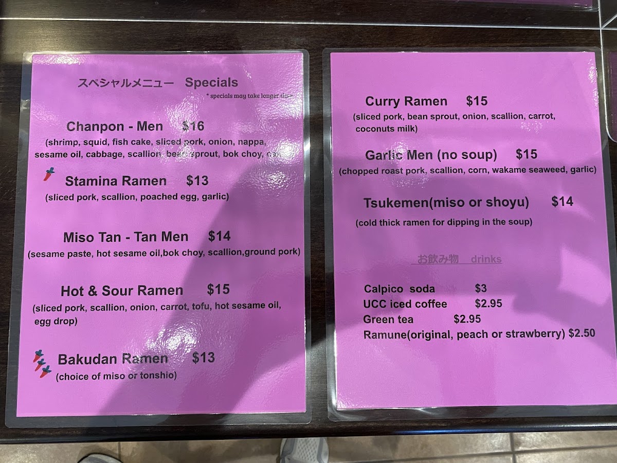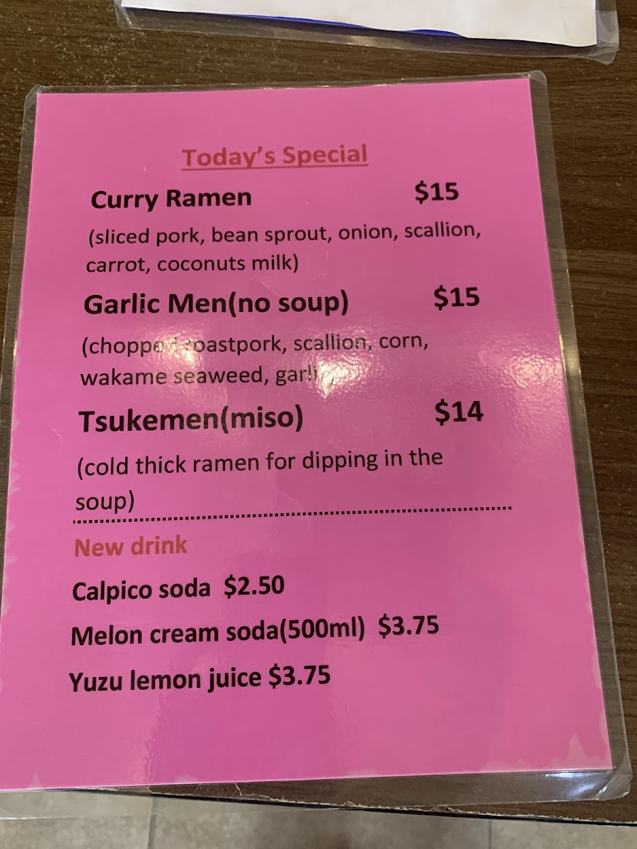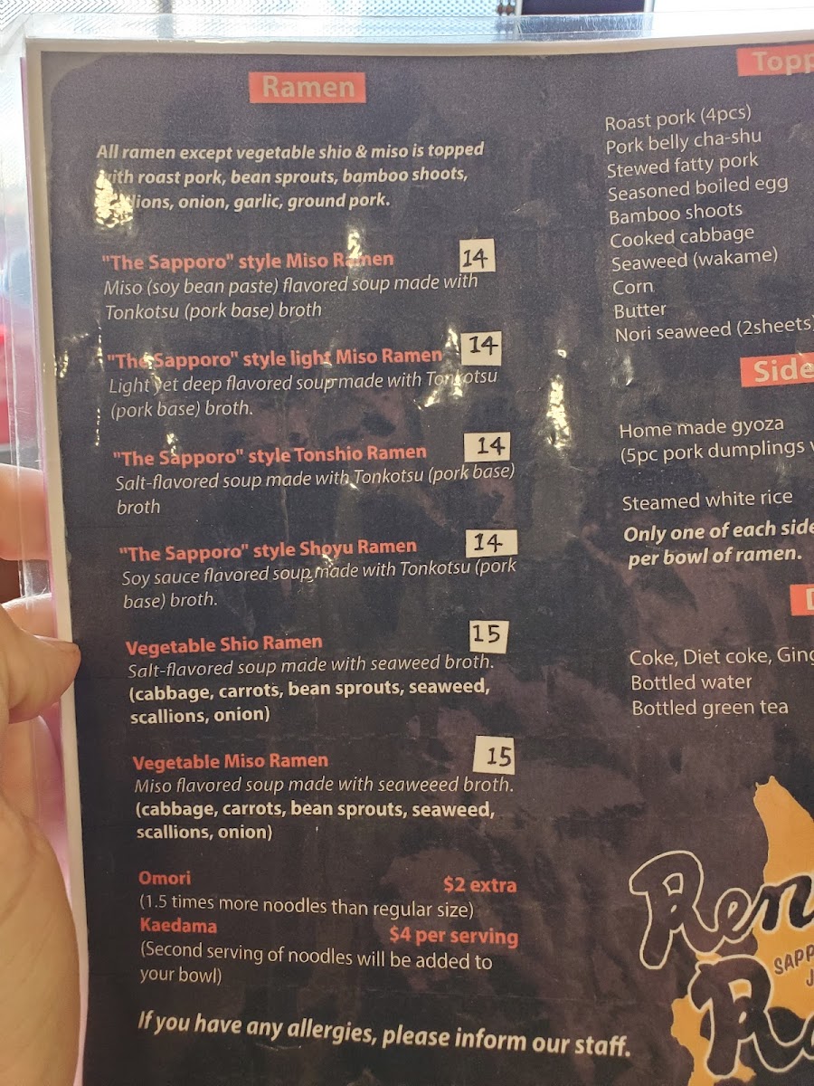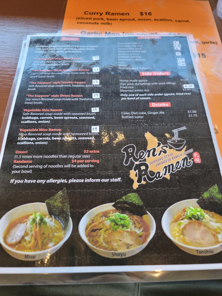 Ren's Ramen Menu